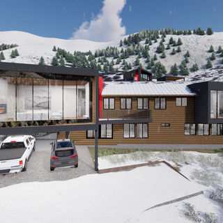 The Lucky Peak Project is a one-of-a-kind business retreat designed to blend architecture with the natural beauty of the mountain landscape. The property will feature five individual guest suites built into the hillside, each with sweeping views and private outdoor space. In total, the retreat offers over 4,500 square feet of living area, including outdoor dining terraces, a hot tub with a lounge area, and a distinctive subterranean suite that rises from the mountain’s peak.